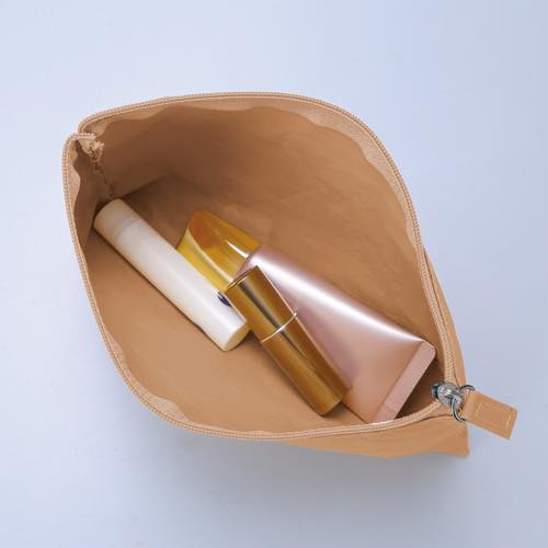 性別問わず使えるナチュラルカラーのシンプルポーチ。フラット型なのでバッグの中にもすっきり収まります。