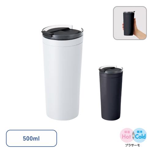 蓋の一部がクリアデザインのシンプルなプラサーモタンブラーです。