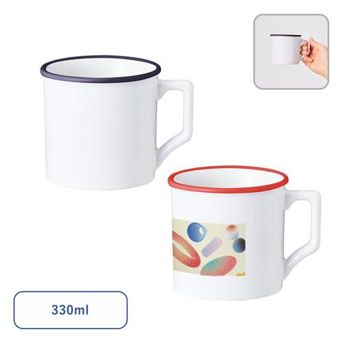 マークレススタイルでは陶器で仕上げ、側面に昇華転写のフルカラー印刷が出来るようにしました。