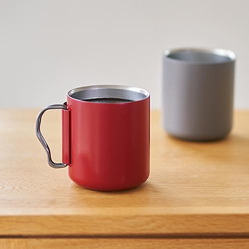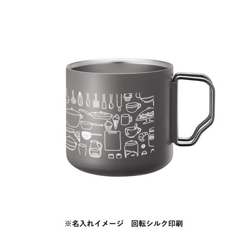 アウトドアシーンで人気に火がついたサーモマグにZalatto素材の商品が登場しました。こちらのサーモマグは、ハンドルが取り外しできるので収納の際に場所を取らず、持ち運びに便利な商品となっております。アウトドアシーンだけでなく、普段も使いやすいおしゃれなデザインのサーモマグはアパレルブランドのノベルティやライブの物販品として幅広く活躍するアイテムです。回転シルク印刷で広い範囲に名入れができるのもおすすめのポイントです。