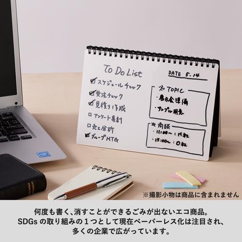何度も書いたり消したりできるため、ごみが出ないエコ商品になります。
