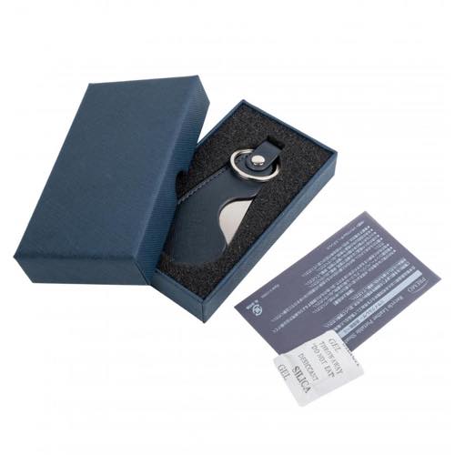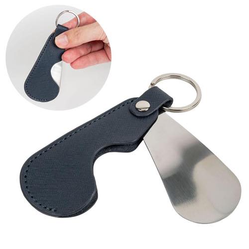 皮革製品製造時に出る未利用端材などを再加工して製品化したスタイリッシュな携帯用靴べら。高級感のある仕上がりで、ビジネスパーソンや身だしなみに気を遣う大人にぴったりのアイテムです。リング付きでキーホルダーとしても使える実用性が魅力。展示会や企業イベント、周年記念など、上質な印象を残したいシーンでのノベルティに最適です。コンパクトで携帯性に優れており、バッグやポーチに入れていつでもスマートに携帯できます。