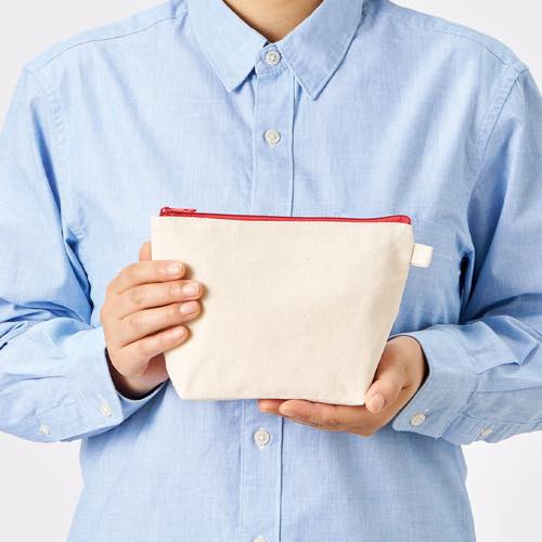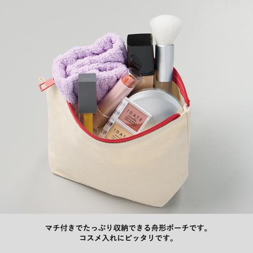 マチ付きでたっぷり収納できる舟形ポーチです。