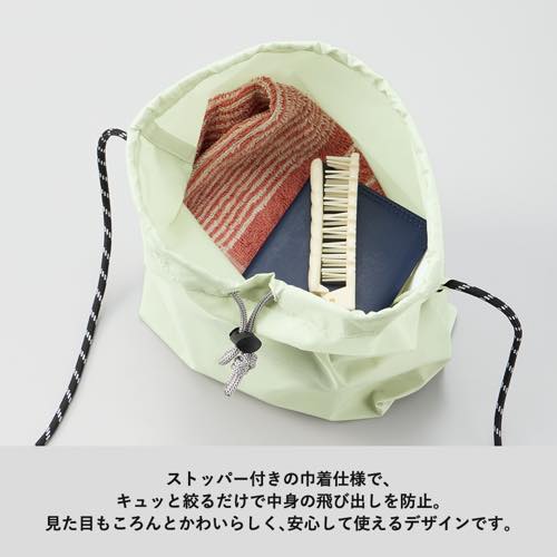 口元はストッパー付きになっており、中身を入れてキュっと絞れば