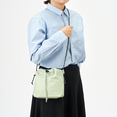 上質な光沢感としなやかでさらっとした手触りが特徴のファインライトポリを使用した巾着ショルダーです。