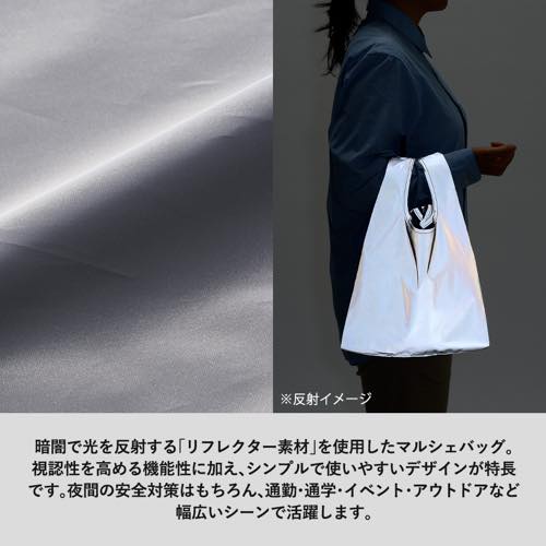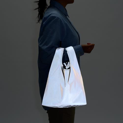 暗いところで生地に光が当たると反射し、夜道などで役立ちます。
