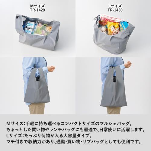 M・Lの2サイズ展開で、Mサイズはコンビニでのちょっとしたお買い物に最適なサイズ感です。