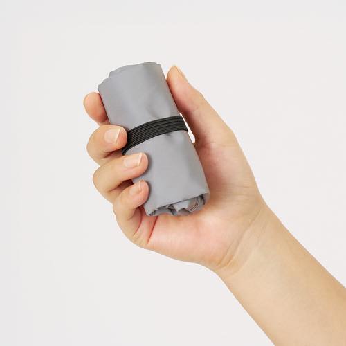 持ち手の先にゴムがついており、くるっとまとめることができるため持ち歩きにも便利です。