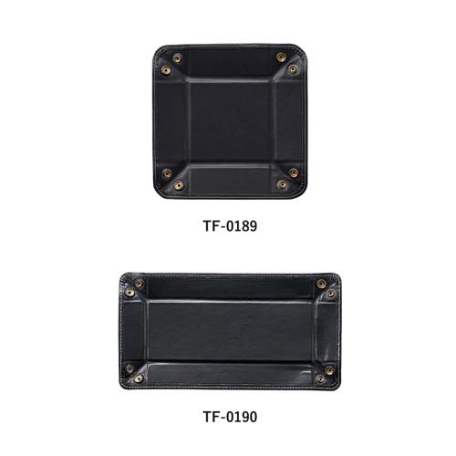 ちょっとした小物置きにぴったりなPUレザーを使用したトレイです。