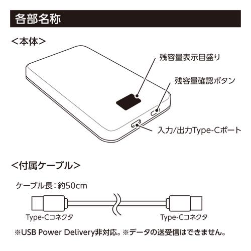 | 備 考 | 付属品/取説付、Type-C-USBケーブル付属 最大出力2A、バッテリー容量5000mAh、本体重量約122g [A8] |