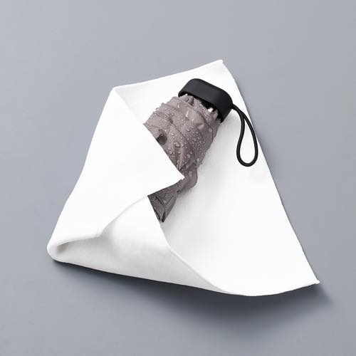 内側の生地は吸水力に優れており、折りたたみ傘やペットボトルを包めば