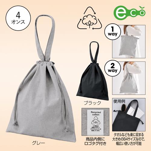 スフィア・リサイクルコットンフラット2WAY巾着バッグ